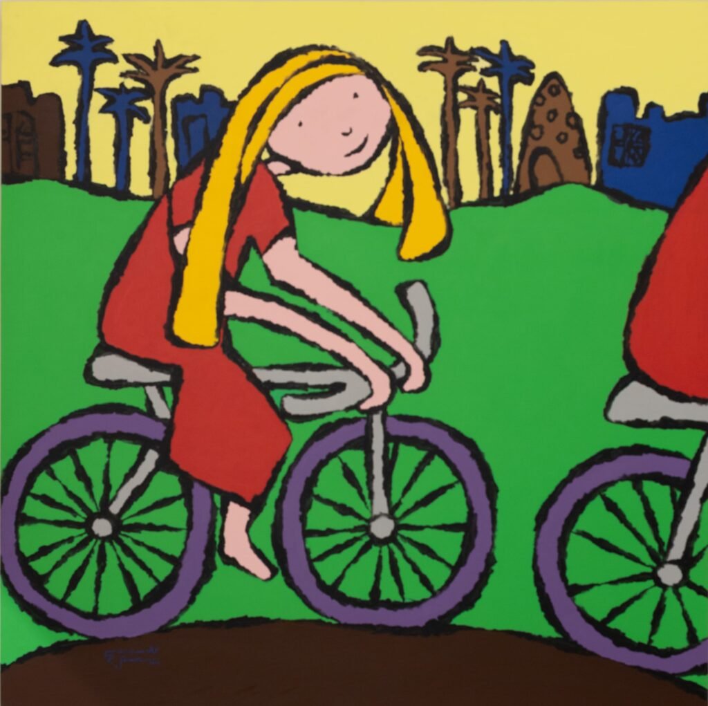 His art draws from everyday Egyptian life and folk heritage, using bold colors and strong black lines to depict social narratives. Through simplified forms and vivid contrasts, his work captures the rhythm, movement, and emotional landscape of ordinary people.