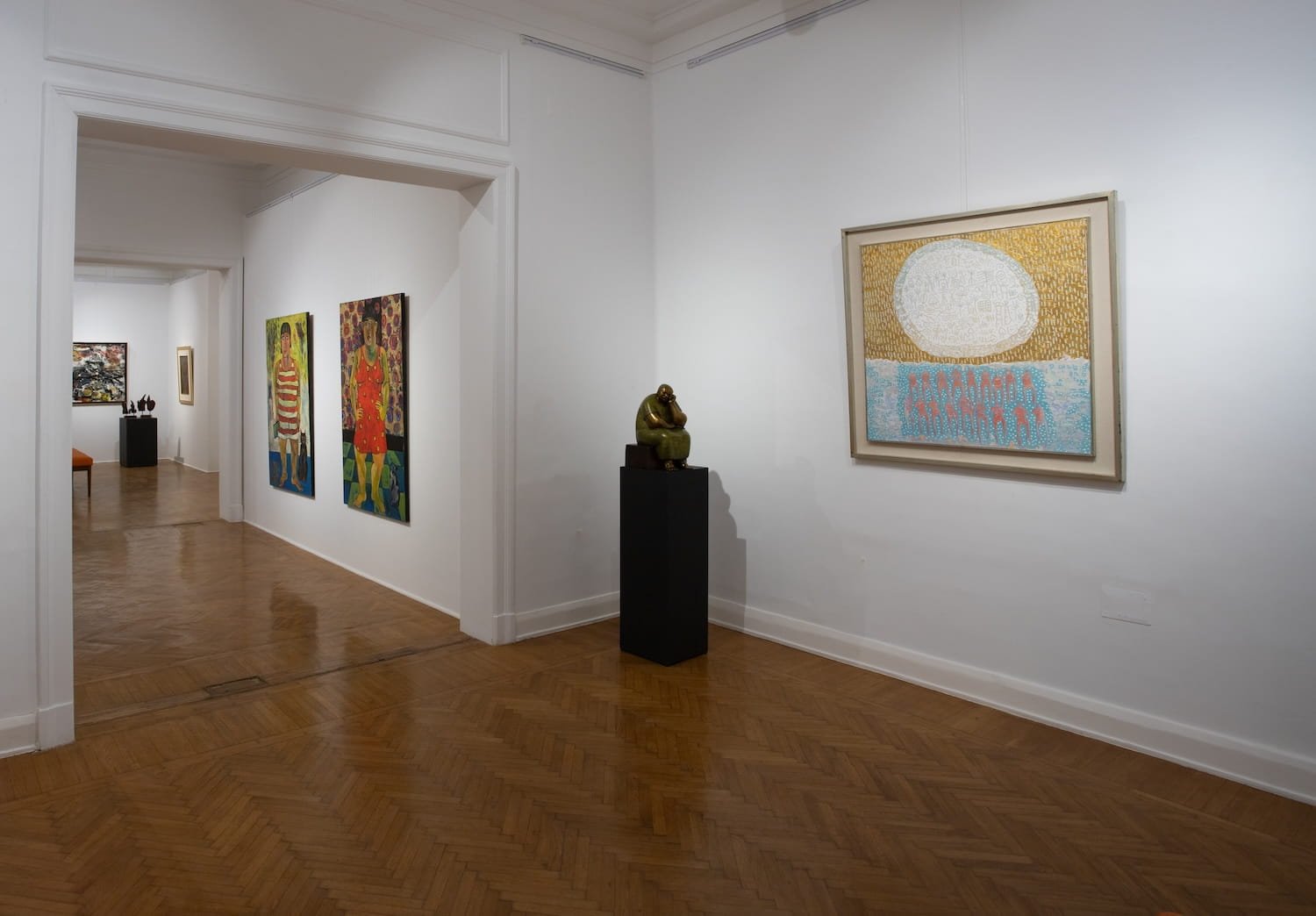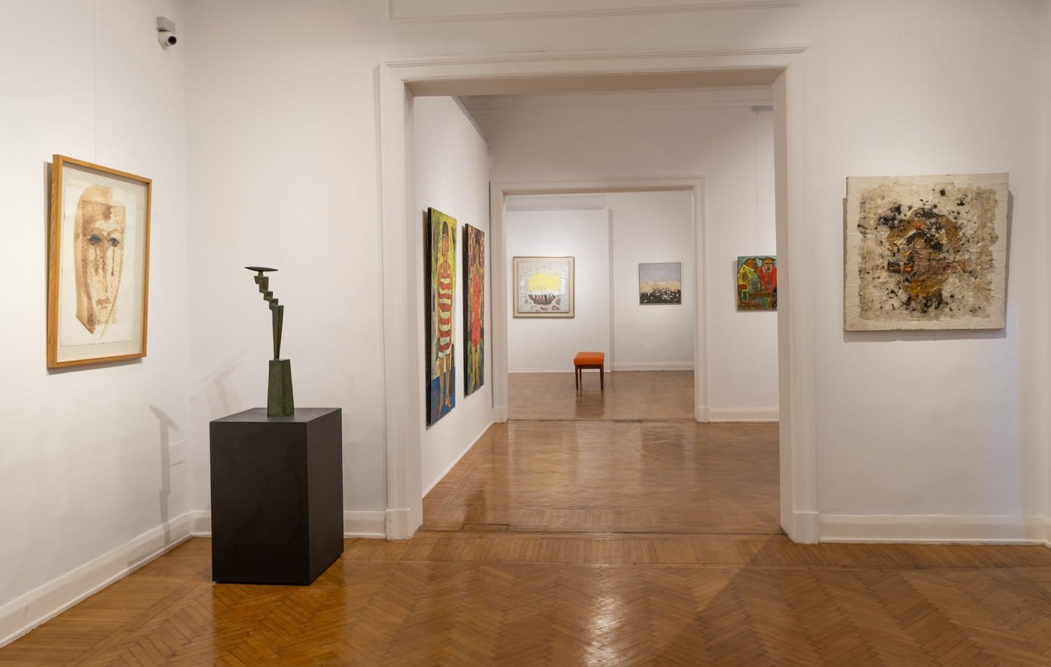 This dialogue deepens through the practices of Hesham Abdel Moaty, whose sculptural works explore the expressive potential of the human form, and Licia Martini, whose vibrant, kaleidoscopic compositions evoke movement, emotion, and a search for equilibrium. Mohamed Abou El Naga’s experimental surfaces and Mohamed El Fayoumi’s sculptural reflections of vernacular character extend this material and conceptual exchange, while Omar El Fayoumi’s introspective figuration offers a profound meditation on identity and presence. Anchoring the exhibition, Sameh Ismail’s abstract calligraphic language bridges heritage and modernity, and Wael Darwish’s theatrical compositions present a dynamic vision of human presence. Together, these practices construct a multifaceted field of perception that transcends singular narratives, offering instead a rich encounter with art as a space of reflection, transformation, and possibility.